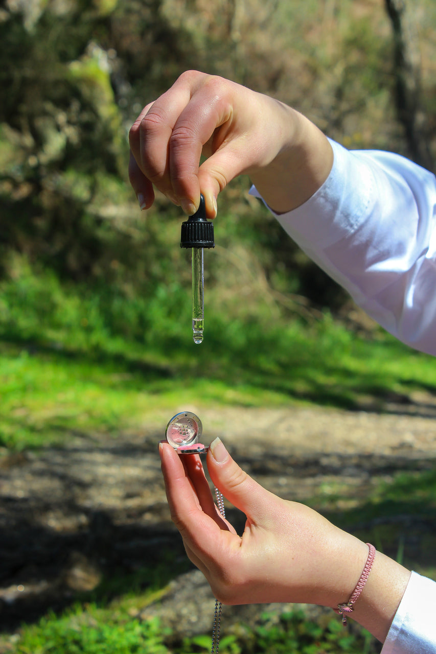 Os nossos frascos de CONTA-GOTAS incluem uma Sinergia Concentrada que é feita apenas de Óleos Essenciais sem nenhuma base de mistura, para que seja possível aproveitar ao máximo os benefícios das plantas. Desta forma podemos aplicar a sinergia num ambientador, queimador ou diretamente num colar aromaterapêutico.