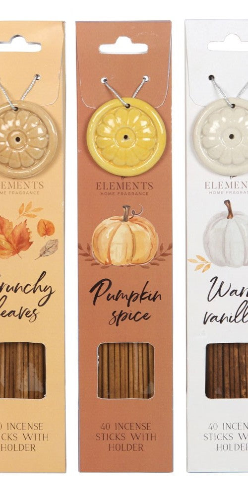 Estes conjuntos de incenso incluem 40 varetas e são ideais para a chegada do outono Inclui ainda uma base de incenso em forma de abóbora. O tempo de queima aproximado é de 35 minutos por vareta.
