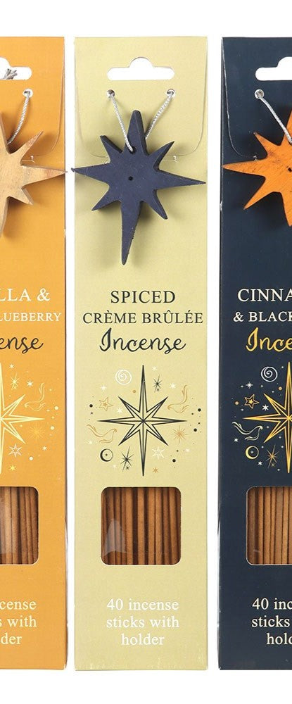 Estes Kits de Incenso Noite Estrelada, contêm cada um 40 varetas de incenso enroladas à mão e uma base em forma de estrela. Com uma embalagem lindamente decorada com motivos celestiais, estes incensos são um presente aromático e atencioso para momentos festivos e de relaxamento.